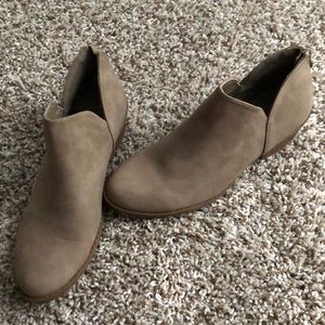 NWOT tan booties with zipper on the back.