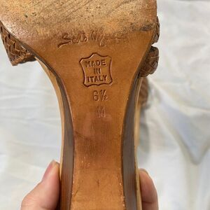 Tan Brown Braided Open Toe 90s Euro Leather Block Wedge Heels Sandals 6.5