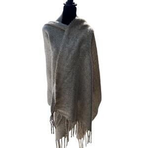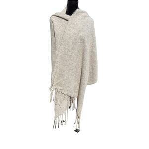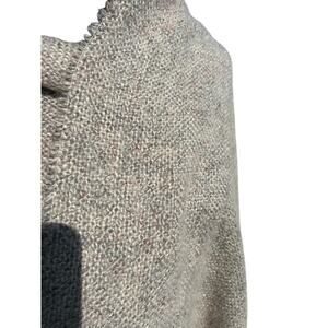 This is a beautiful woven shawl or wrap, perfect for adding a touch of warmth and style to any outfit! The tan color with brown flecks gives it a natural and versatile look.