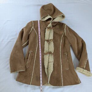 Tan Brown Sherpa Lined Faux Suede Toggle Closure Hooded Coat
