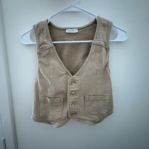 Stylish tan tank top with a button-front design. Perfect for casual outings.