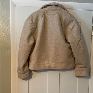 LIKE NEW! Only worn once. Stylish tan button-up jacket with front pockets. Perfect for layering.