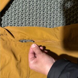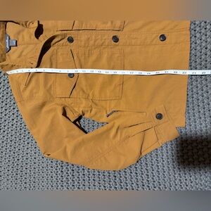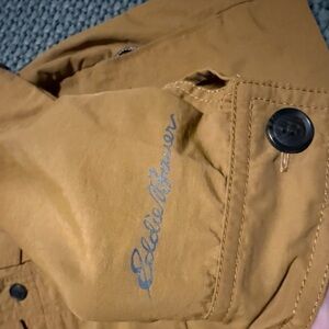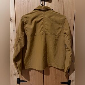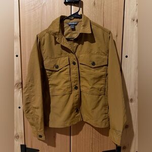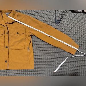 Stylish tan button-up jacket with front pockets. Perfect for casual wear.