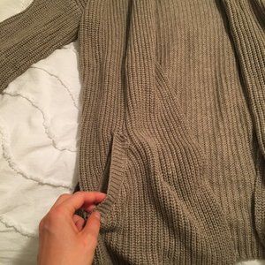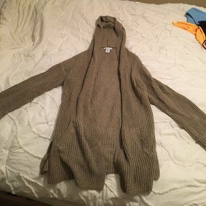 Tan hooded cardigan with pockets. Big sleeves and slits on side. Super cozy and can be dressed up or down! Worn once, in brand new condition!