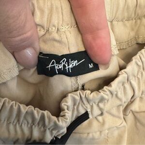 Tan Cargo Pants with Elastic Cuffs and Drawstring Waist