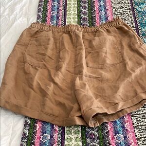 These tan cargo shorts offer a relaxed fit and feature an elastic waistband for ultimate comfort. The warm, neutral tone makes them a versatile choice for casual outings.
