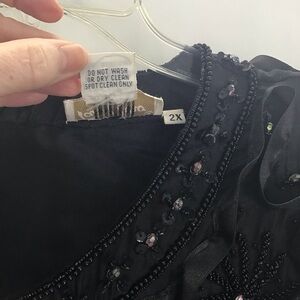 Tan Chho Vintage Beaded Sequined Silk Jacket Ribboned Detail Party Blk Size 2X