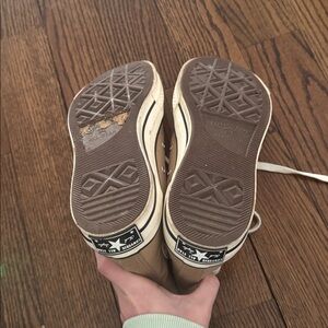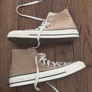 Lightly worn canvas tan Converse all stars. Size 9, men’s, size 11 women’s. Comes from a smoke free home. No trades.