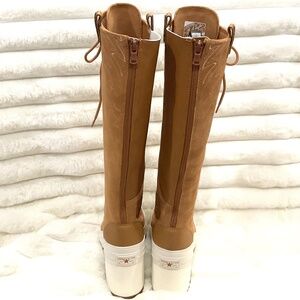 Gorgeous and hard to find! These tall tan boots feature full lace-up styling, a chunky white platform sole, and the classic Converse star patch. Perfect for fall/winter fits, streetwear, festival looks, or edgy everyday outfits.