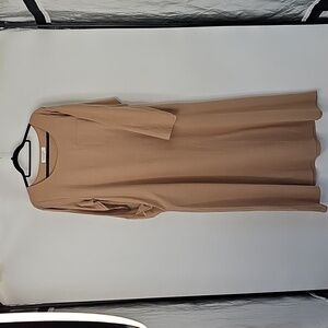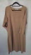 Tan Cotton Linen Blend Crew Neck Long Sleeve Lagenlook Midi Dress w Side Pockets