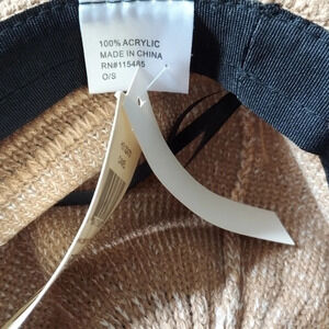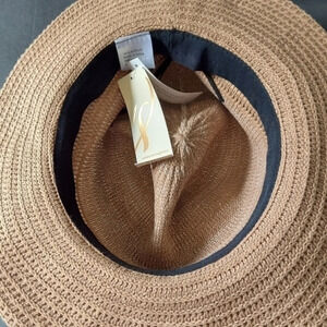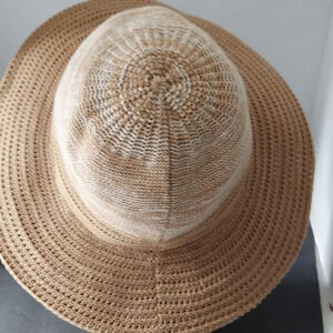 Tan Cream Woven Floppy Brim Beach Sun Coastal Prep Hat Adjustable Fit Band Packable