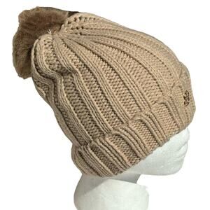 Tan Daisy Fuentes Beanie. This women’s hat fits most around size medium.