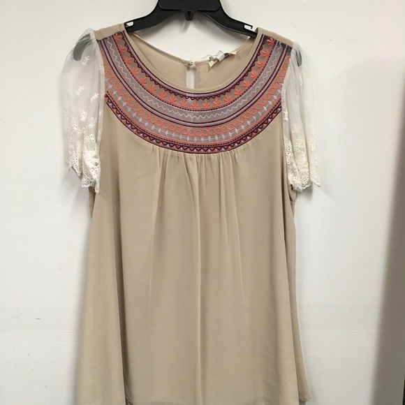New never been worn. Cotton/polyester dress with lace sleeves.