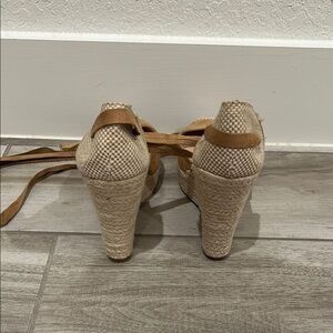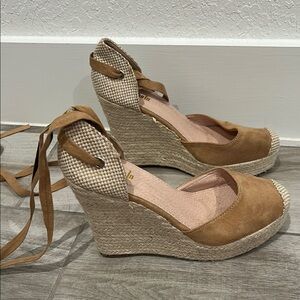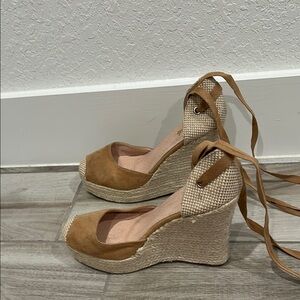 Tan Espadrille Wedges with Ankle Wrap Laces