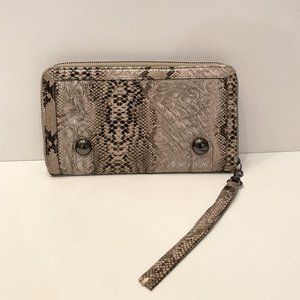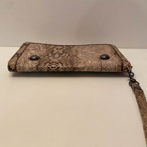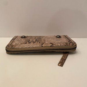 Tan Faux Snake Skin Clutch Wallet