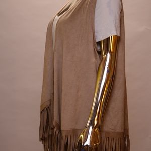 This open vest faux suede looks and feels like the real deal suede, but softer and more versatile. The vest is light and chic with a swing style look. Adds just enough spice to any outfit. Color it up with a scarf or jewelry, even by itself with a nice colored tee will make you sparkle.
