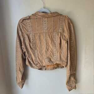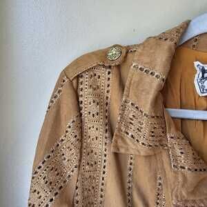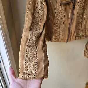 Tan Faux Suede Moto Jacket Size M Embroidered Cropped Boho Lined Biker Jaase