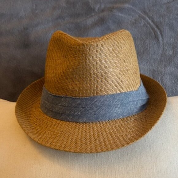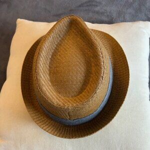Tan Fedora with Blue banding. Size L/XL. 100% Paper.
