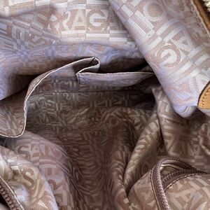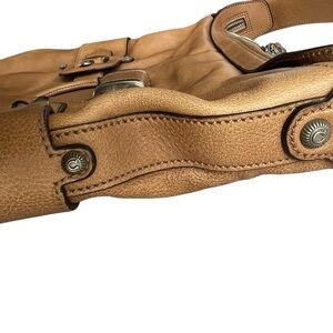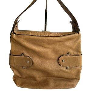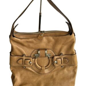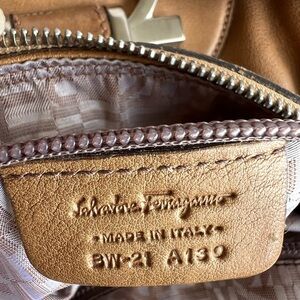 This gorgeous tan Ferragamo bag is in excellent condition with only minor signs of wear. There are no signs of discoloration or damage. The inside is clean. It features the iconic Ferragamo logo prominently front and center. Made from premium calfskin leather. Perfect for any occasion.
