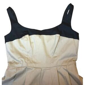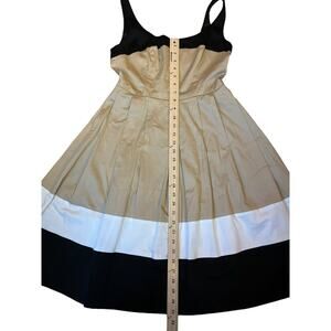 Tan Fit & Flare Sleeveless Stretch Dress Pockets White Black Stripes Size 4 WISP