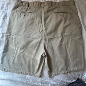 These tan shorts feature a flat front design, offering a sleek and modern look. Made from lightweight material, they are perfect for warm weather and casual outings. The versatile color makes them a staple for any summer wardrobe.