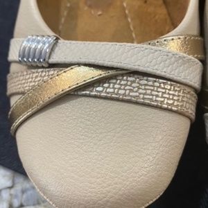 Size: 6 1/2. Color: Tan with gold and silver accents