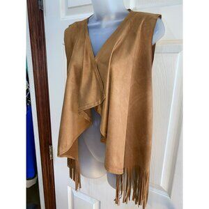 Tan Fringe Boho Vest With Embroidered Rose & Love & Peace Back Print OS