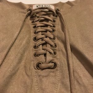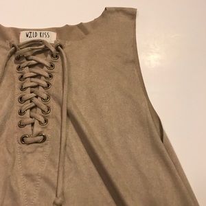 COMPLETELY NEW WITHOUT TAGS. Never worn and just recently bought! From TJ max and in amazing condition. Size medium and 88% Polyester, 12% Spandex. You can definitely feel more of the spandex material in this shirt. Thin material but wears kind of heavy. Could also work for a size small. Will accept offers :-)