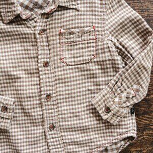 Tan Gingham Button Up Shirt: 3T