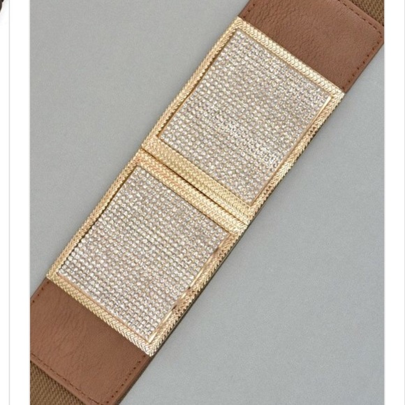 Tan Gold Rhinestone Stretch Elastic Waist Belt