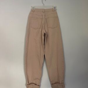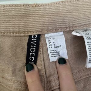 Tan H&M "Divided" Khaki Pants/Baggy Mom Jeans. The cuff shown in the images is not permanently sewn there, just how I bought them. (can be uncuffed) Size 0, lightly worn, Good Condition despite some fraying at the bottom of one tag. Mimicking vintage grunge/skater/80s aesthetics. High waisted.