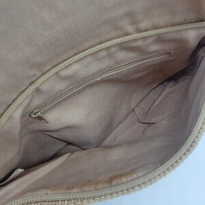Tan Handbag with Applique Crochet Shoulder Bag Matching Attached Coin Purse