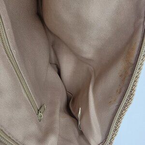 Tan Handbag with Applique Crochet Shoulder Bag Matching Attached Coin Purse.