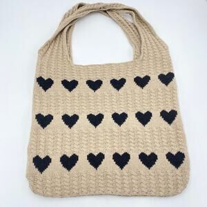 Tan Hearts Knit Over The Shoulder Tote Bag 14 x 12.5