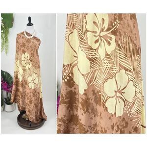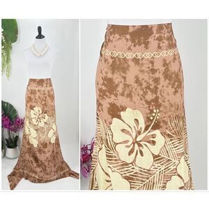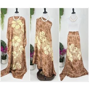 Tan Hibiscus Tan Tie Dye Tropical MAXI SARONG Kīkepa Pareo Beach Wrap Skirt