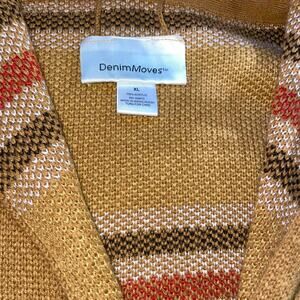 Tan Hooded Sweater Cardigan Coat Jacket Snap Front Stripes XL