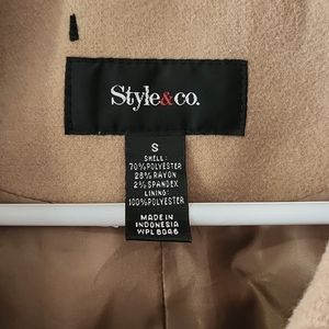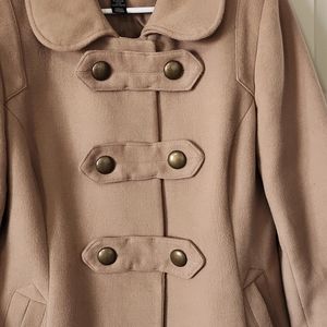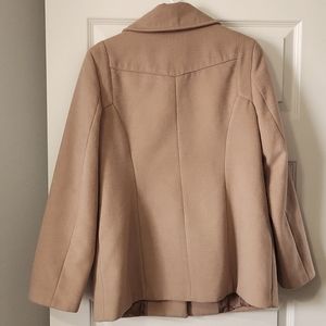 Gently used tan jacket with gold buttons. Smoke-free home.