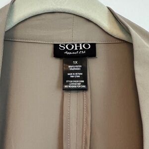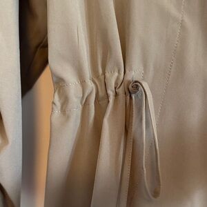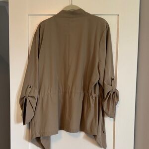 Chic tan jacket with open front. Features adjustable waist ties and relaxed sleeves. Very lightweight and great to take from spring, to summer, to fall. NWOT purchase for an event and never used.