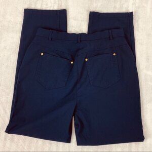 Tan Jay Pants Womens 10 Navy Blue Elastic Waist Walking Trousers Gold Rivets