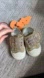 Tan fabric sneakers shoes with easy-to-use Velcro straps. Rubber sole and wide toe box. They match every outfit you can imagine, my son had a smaller size and they were my go to. Very flexible sole.