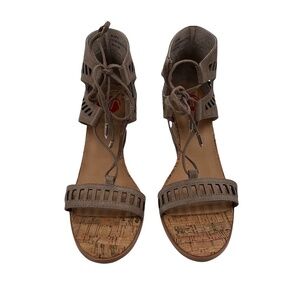 Tan Lace Up Loraine Open Toe Wedge Sandals Size 8 Women’s
