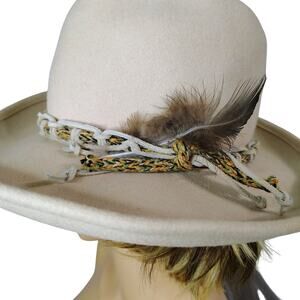 Tan Lancaster Wool Cowboy Western Hat Leather Rope Feather Hat Band Size 7 Women