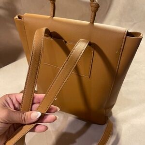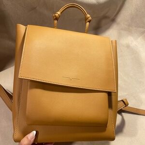 Stylish tan leather backpack perfect for everyday use. Features a sleek design with a convenient front pocket.