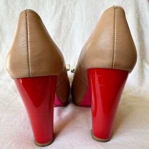 Tan Leather Bow pumps Lola Ramona platform heel women’s 8.5