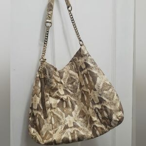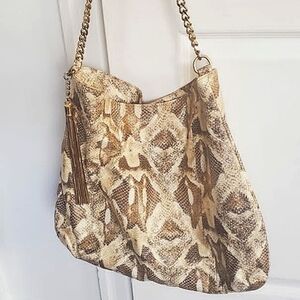 Tan Leather Gold Shimmer Python Print Shoulder Bag 🌴