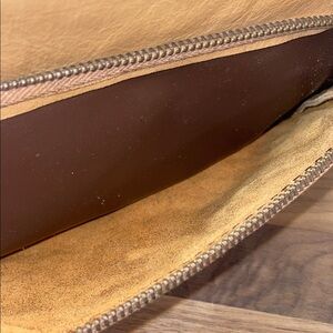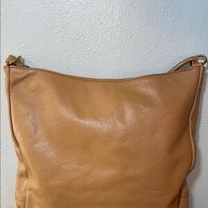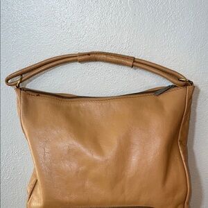 Tan Leather Hobo Shoulder Bag Slouchy Soft Large Tote Zip Front Pocket Everyday