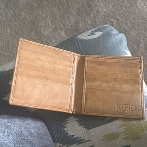 This elegant tan leather key and card holder features a minimalist design, crafted from high-quality leather with a smooth texture. Its warm neutral shade makes it a versatile accessory for any occasion. This men’s wallet can hold up to 10 credit cards.