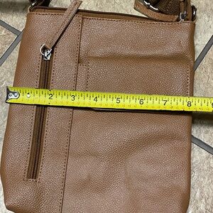 Crossbody style Elegant tan leather messenger bag ideal for daily use. Features an adjustable strap for personalized comfort Shell: 100% Leather. NWOT