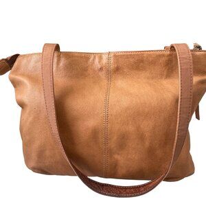 Tan Leather Shoulder Bag Floral Western Boho Soft Slouchy Everyday Purse