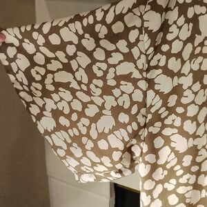 Tan Leopard / Cheetah V-neck Women's Medium Blouse With Tie Business Casual